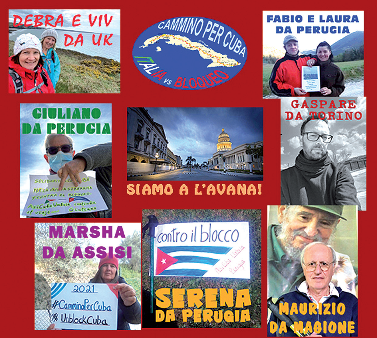 Un cammino immaginario lungo 1561 chilometri da un capo all’altro dell’isola partendo da Baracoa Guantánamo per arrivare a Pinar del Río. Quattordici tappe che hanno coinvolto ottanta camminatori i cui percorsi, fatti in tempi di lockdown, si sono sviluppati intorno casa, ma i cui metri e chilometri si sono sommati gli uni con quelli compiuti dagli altri. E dove ognuno dei partecipanti ha potuto seguire dagli schermi dei propri computer o dei propri smartphone gli sviluppi, tappa per tappa. Un progetto ideato e voluto da Asicubaumbria che ha avuto lo scopo di tenere insieme e intrecciare tra loro cammino e solidarietà con Cuba, in opposizione al blocco che strangola l’economia dell’isola e che perfino impedisce e ostacola l’acquisto di dispositivi sanitari preziosi in tempi di pandemia.